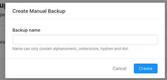 • Click on the Backup button and fill in a name for your backup. Your backup name must be unique.