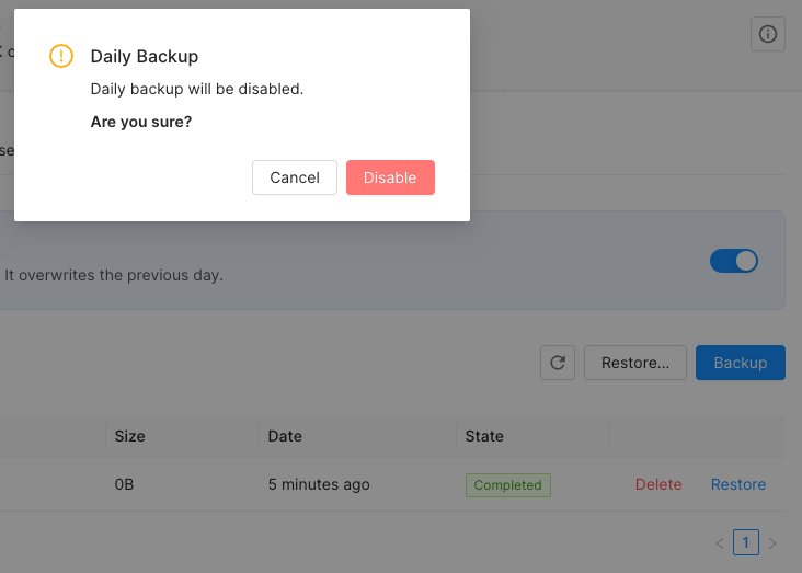 During the process of creating a backup for your database, it is important to note that your database will be temporarily locked, which means these operations will be unavailable during this time: