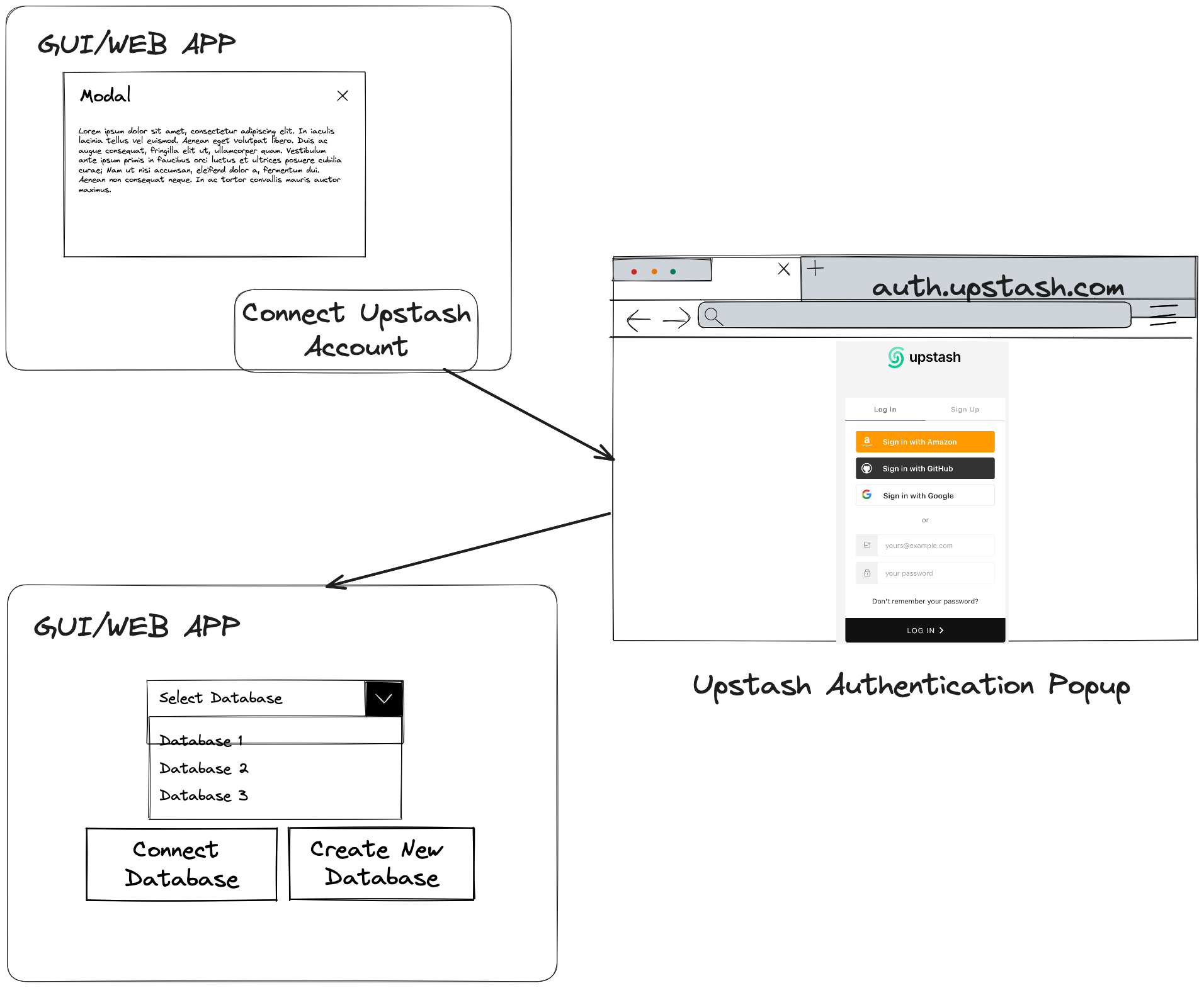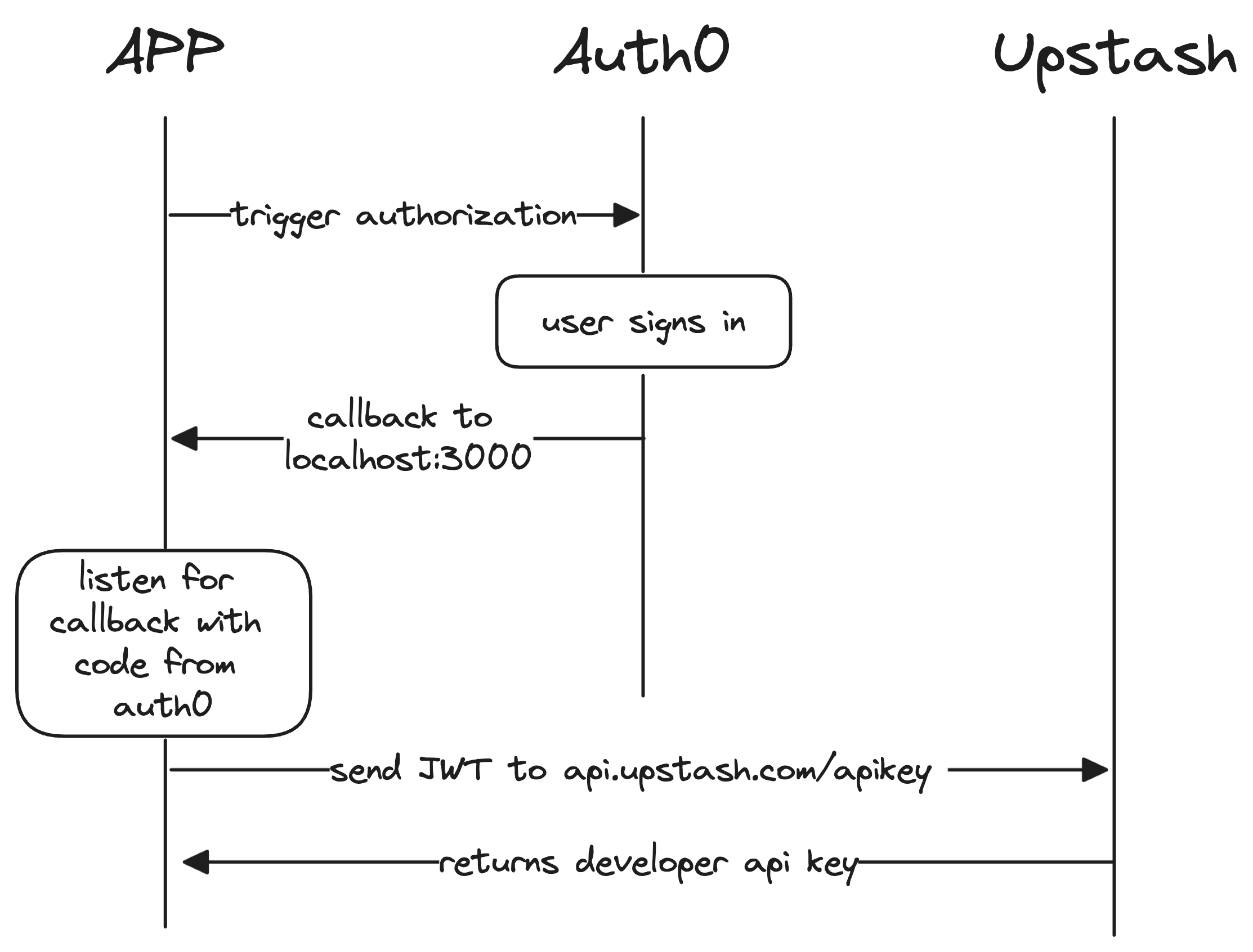 button from Web App. - Web App initiate Upstash OAuth 2.0 flow. Web App can use Auth0 native libraries.
