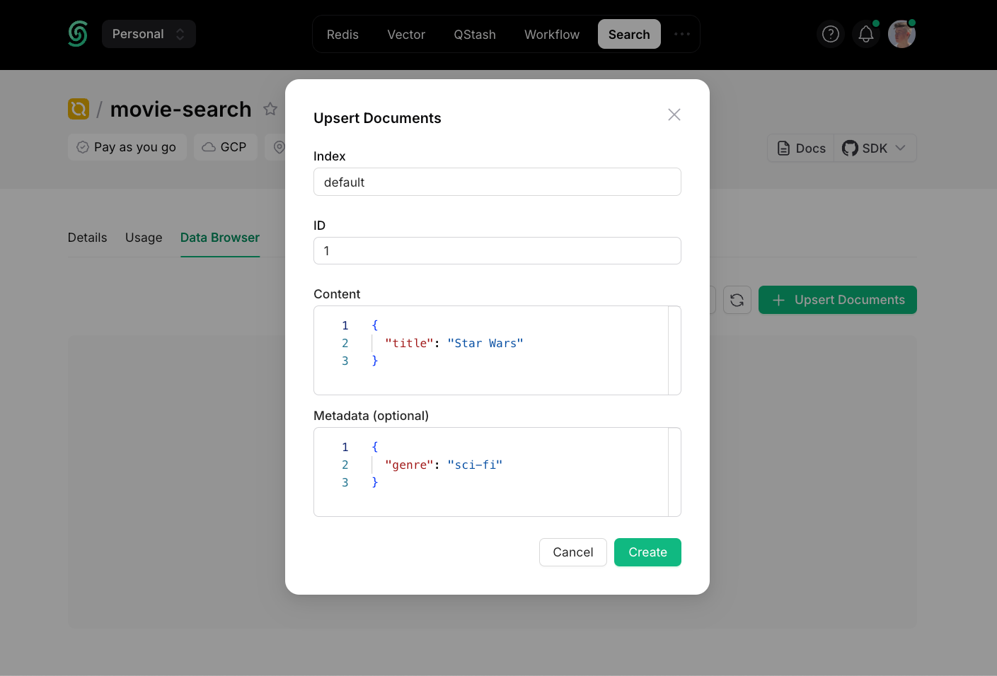 That’s it! 🎉 You’ve just created your first serverless search database with Upstash Search! But this is just the beginning. Upstash Search also supports: