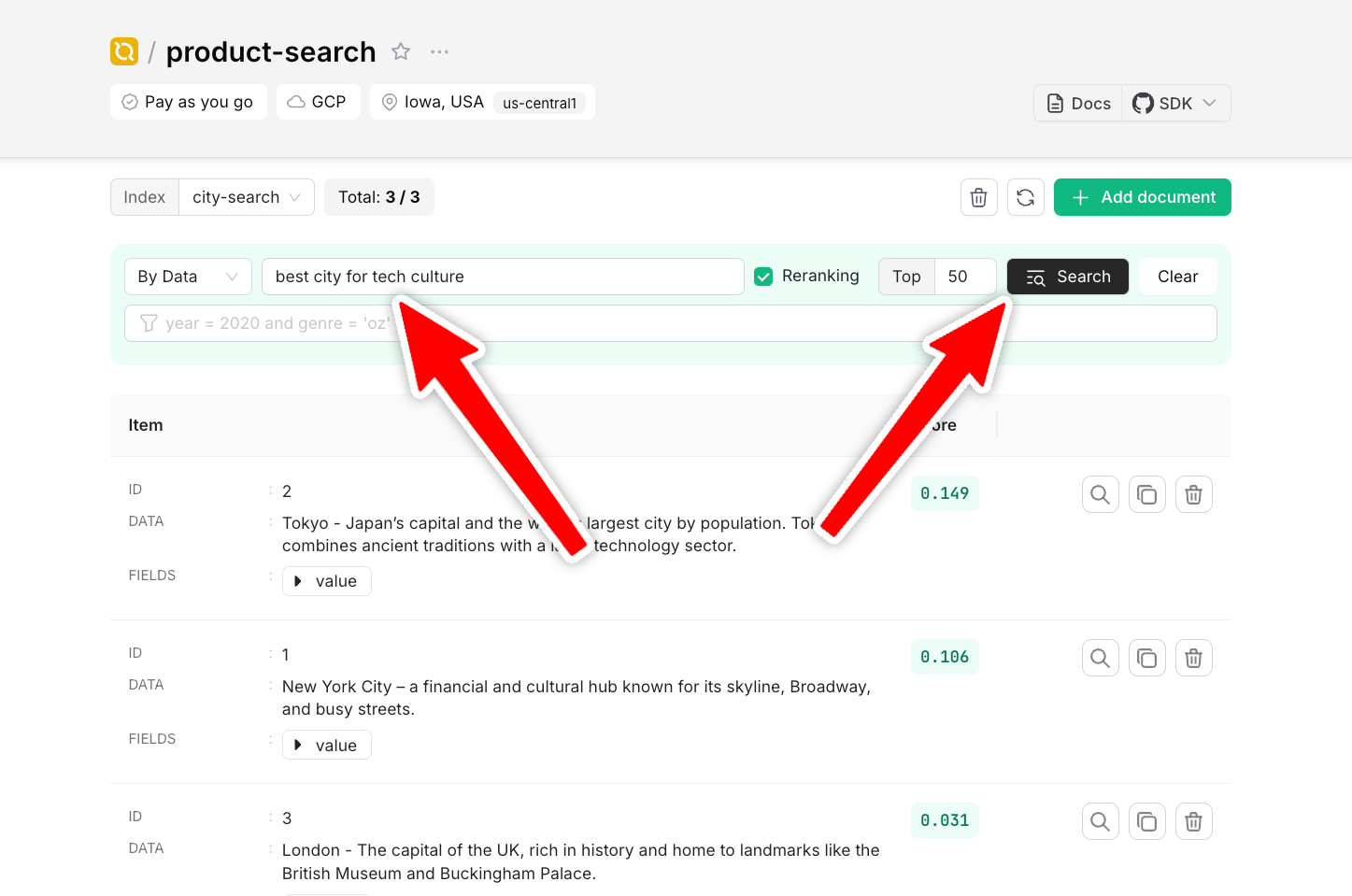Add documents to your database using our REST API, our SDKs, or directly in the dashboard.1. Add Documents via Dashboard