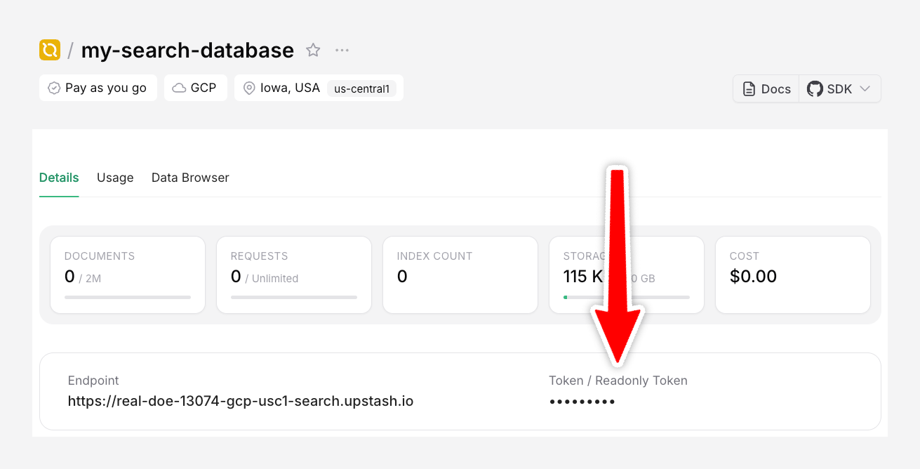 Our search component is designed to be provider agnostic. In the code below we’re using Upstash Search - our solution for fast, reliable and highly scalable serverless search. Creating a search database takes less than a minute: get started here. To follow along with Upstash Search, install the package:Using a Readonly Token (recommended)