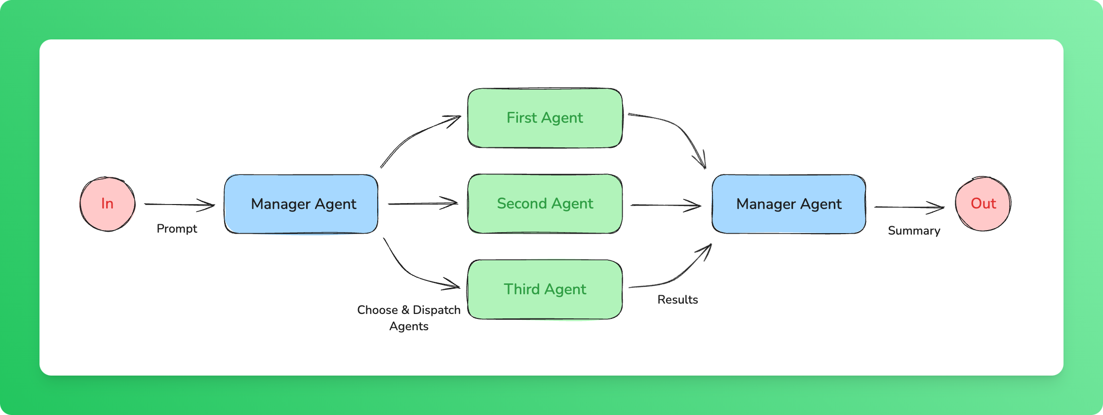If you wish to manually use the model results instead of utilizing a manager LLM as we did in this example, see the parallelization example In response to the prompt, the agents create the following response: