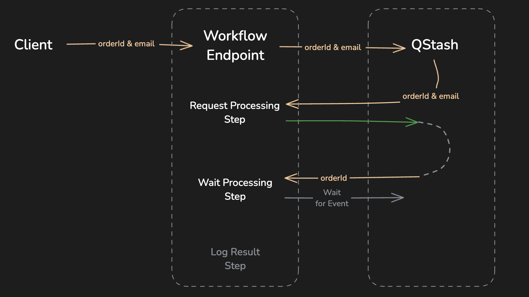 In its first step, we call a method to request processing of the order in the request payload:2. Waiting for the Event